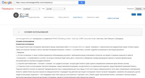 Как уже было упомянуто ранее аферисты Коин Менеджментс не обладают ни лицензией, ни регулированием, что можно определить как по факту отсутствия информации о лицензии или регулировании непосредственно на сайте самих мошенников CoinManagements, так и по возрасту и деятельности самих жуликов Коин Менеджментс.
