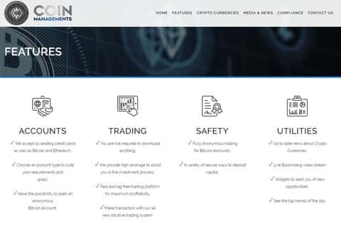 Коин Менеджментс - это очередные мошенники сети интернет, которые зарабатывают на разводе наивных пользователей сети интернет под предлогом торговли форекс, в результате которой аферисты CoinManagements сливают клиентам счет. По совокупности различных фактов связываться с шулерами Коин Менеджментс не рекомендуем !!!