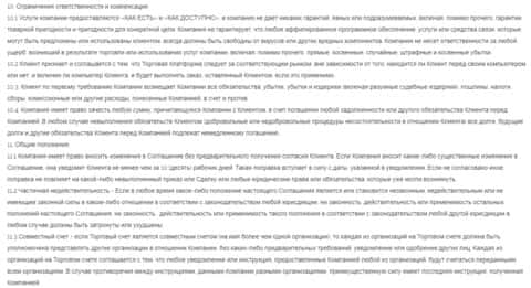 Далее у аферистов Коин Менеджментс вообще следует отказ от ответственности, в котором жулики CoinManagements отказываются от всех своих обещаний, расположенных на главной странице сайта, а ответственность шулера Коин Менеджментс так вообще абсолютно и полностью возлагают на клиента.