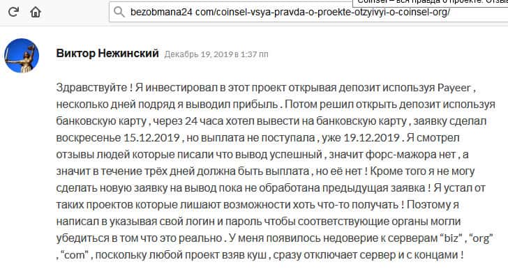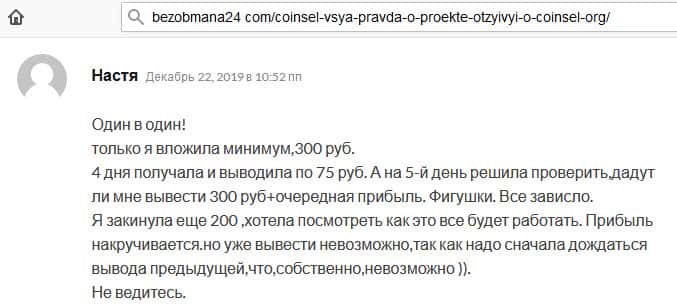 Остатки информации о жуликах CoinSel Org на просторах интернета