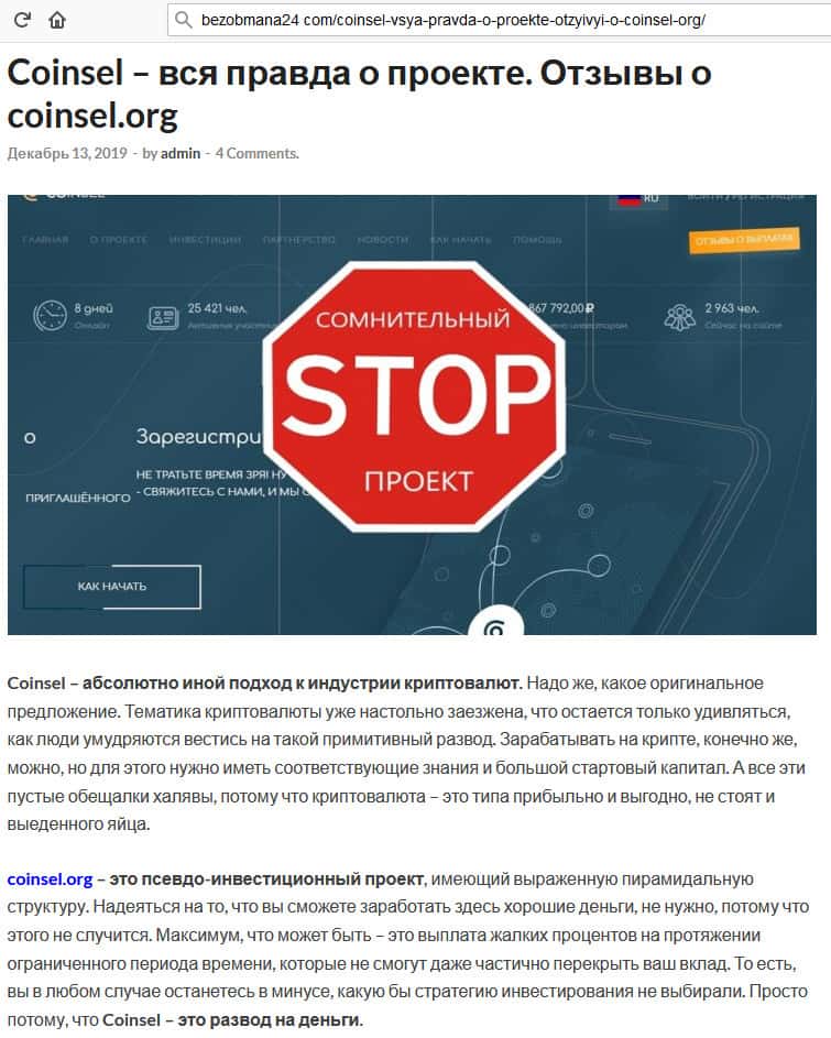 Мнение автора статьи об откровенном лохотроне Коин Сел
