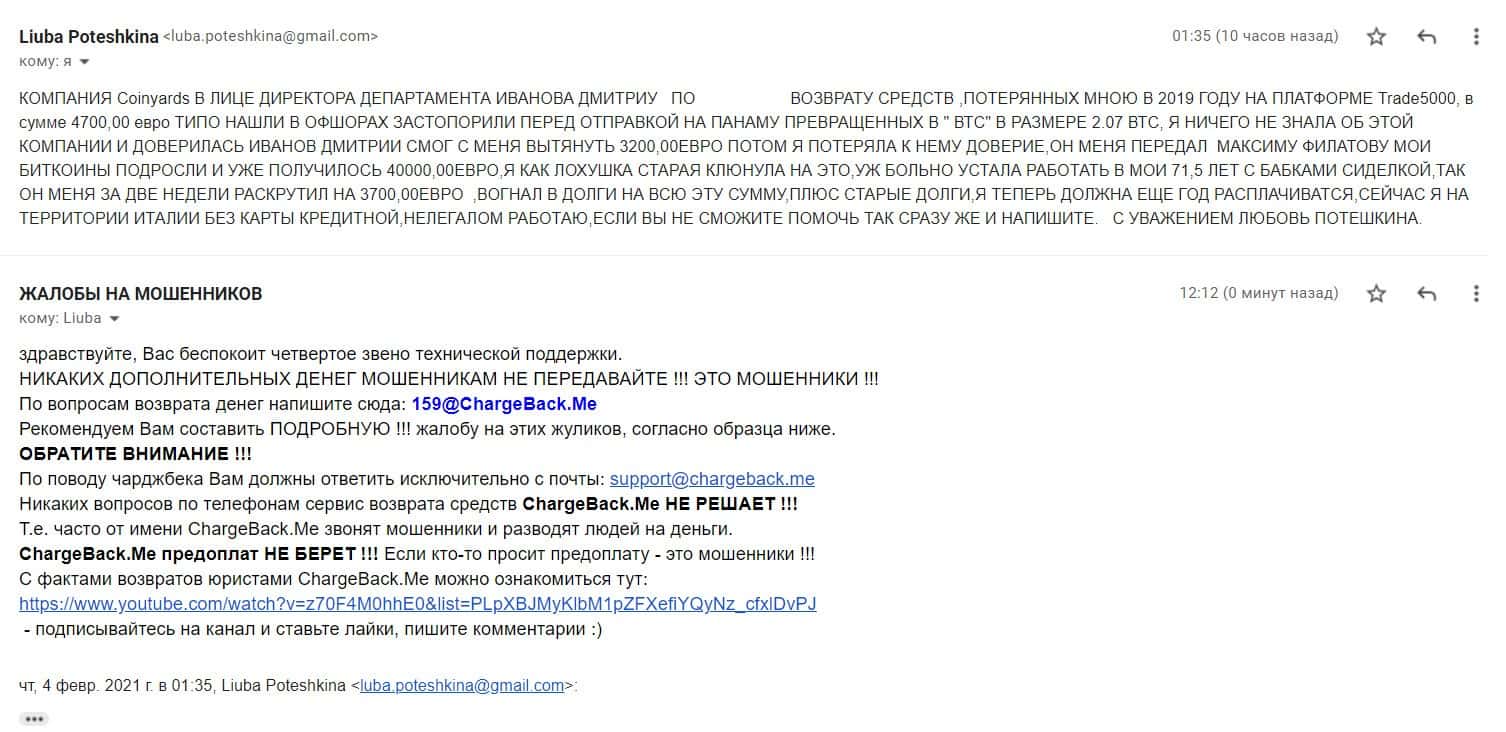 Подробная жалоба на крипто-лохотрон CoinYards - клиент потерял примерно 3000 евро