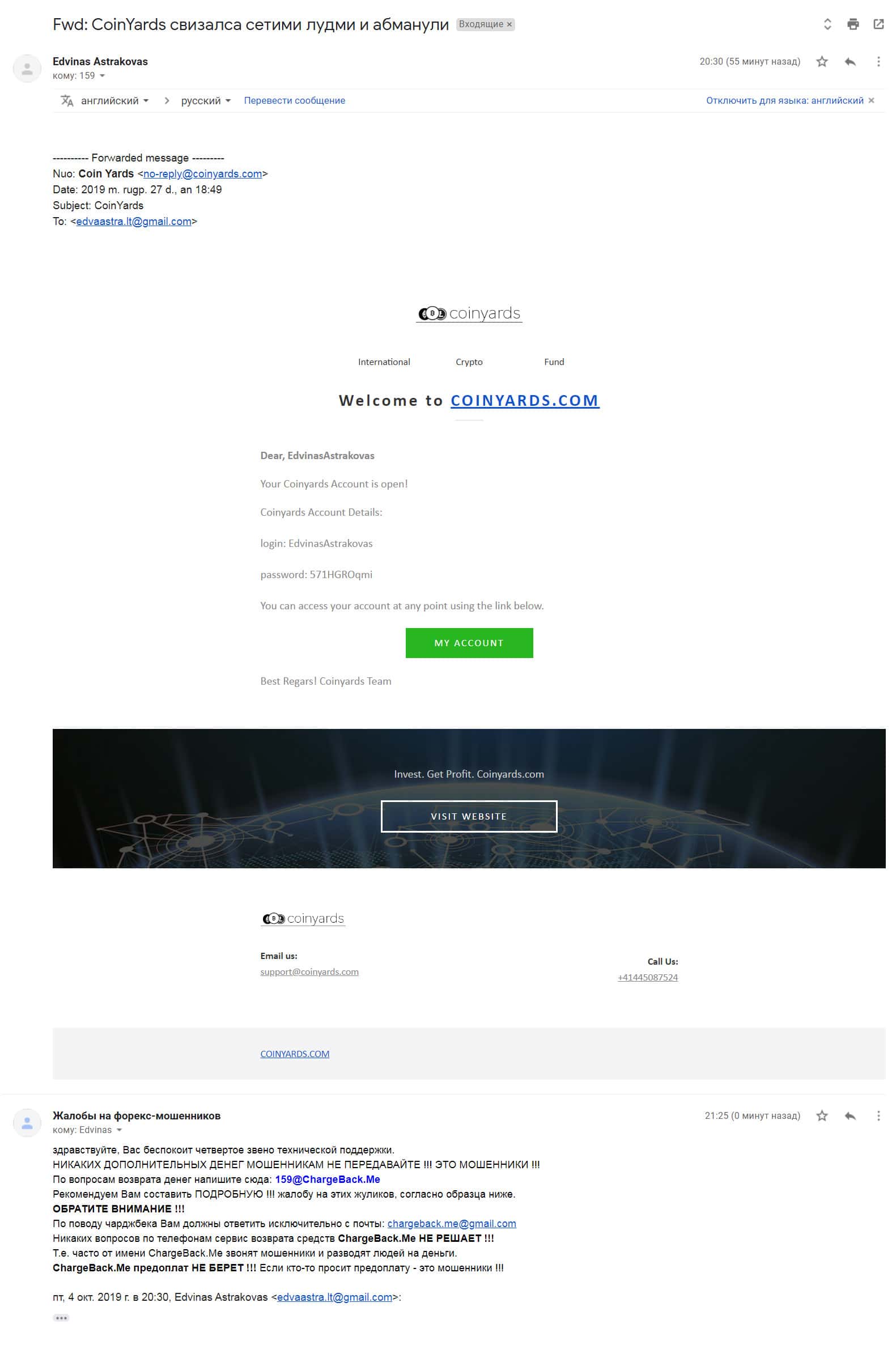 - Подробная жалоба на крипто-лохотрон CoinYards - клиент потерял примерно 3000 евро