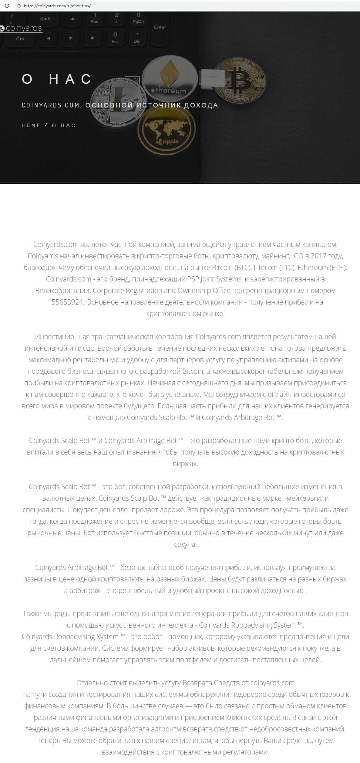- Партнеры скам-конторы Коин Ярдс на их официальном сайте