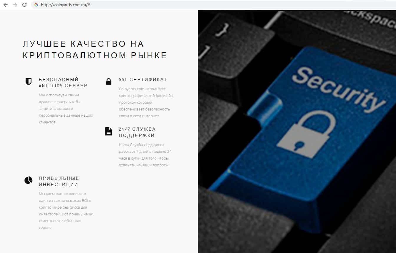 - Обзор официального сайта инвест-лохотрона CoinYards