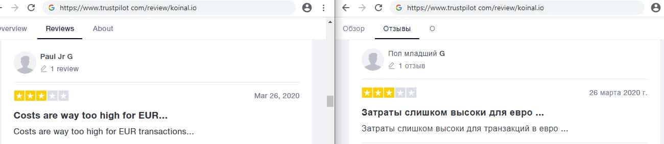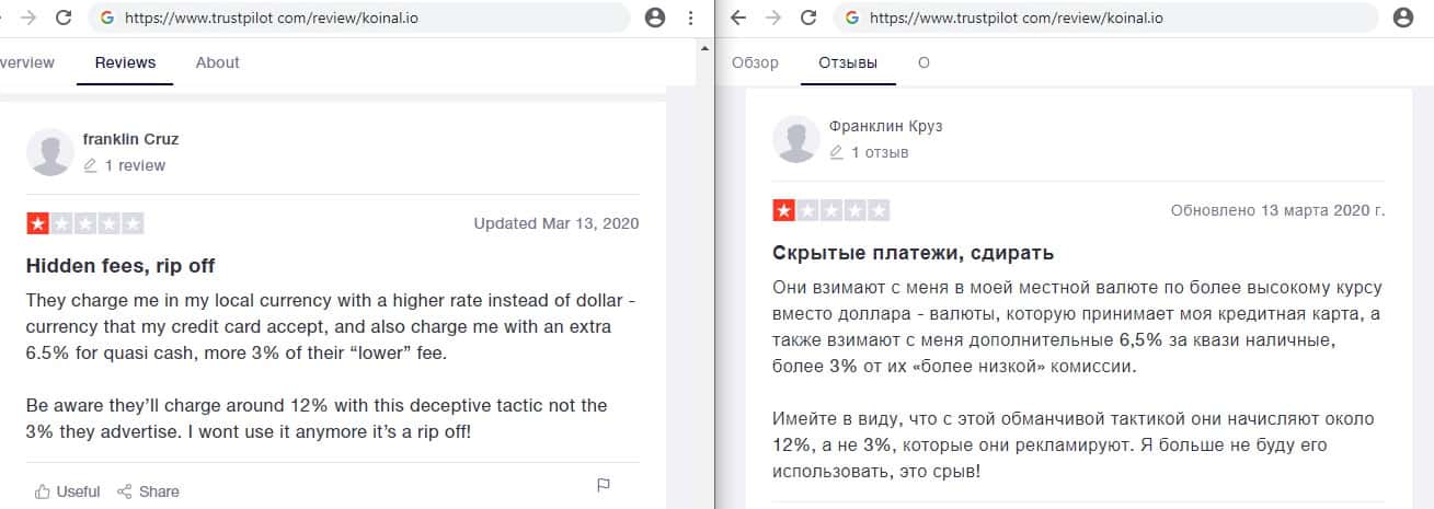 Самым первым и самым главным негативным отзывом о лохотроне Коинал который бросается в глаза, это комментарий о том, что взносы и цены для закупки криптовалют слишком большие даже для Европы не говоря уже про страны СНГ. Главная стратегия аферистов Koinal io - это забрать по максимуму изначально и забыть о своём вкладчике.