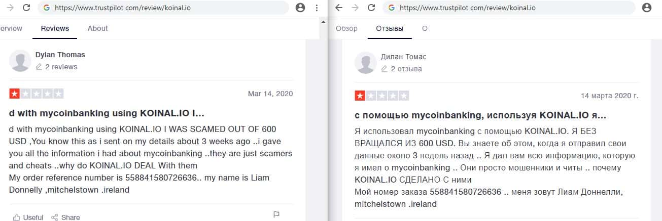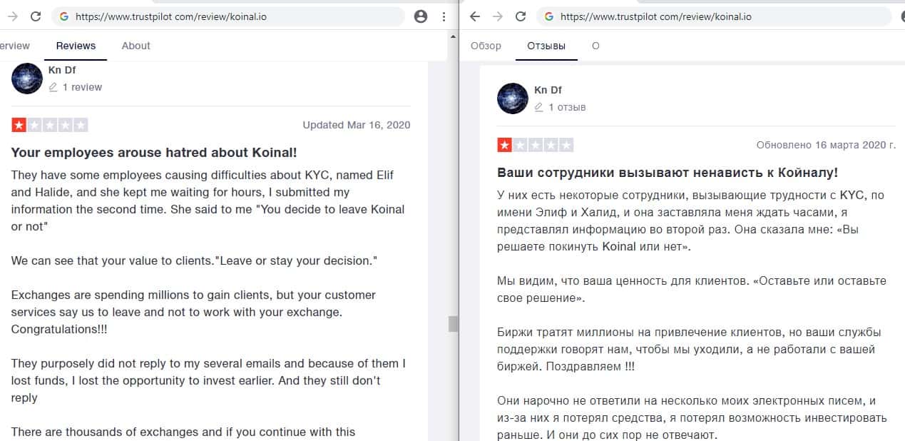 - Негативные отзывы о плохой работе мошенников Koinal io