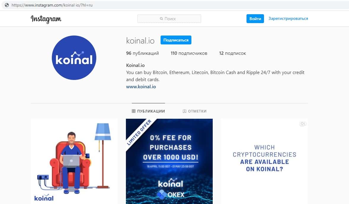 Паутина лжи от лохотрона Коинал уже растянулась даже на социальные сети и первой пострадавшей социальной сетью стал инстаграм. Но это не очень у них получается и подписчиков очень мало около 110 человек. Это показывает то, что доверия к данным афериста нет. Не доверяйте лохотрону Koinal io.