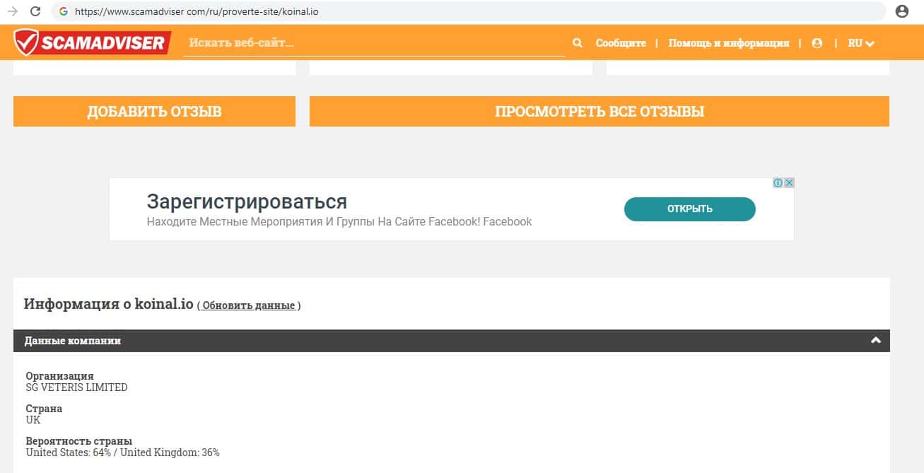- Фальшивая информация представленная на сайте аферистов Koinal io