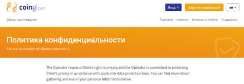Политика конфиденциальности у мошенников Coingi, аналогично клиентскому соглашению, так же представлена на английском языке, что опять же говорит о нежелании руководителей аферистов Коинги их представлять для русскоязычного населения. На изображении, расположенном ниже, вы можете увидеть начало политики конфиденциальности лохотрона Coingi.