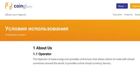 Условия сотрудничества мошенники Coingi не предоставляют в открытую