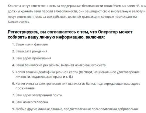 Продолжается клиентское соглашение у мошенников Коинги информацией о том, что аферисты Coingi могут в любой момент запросить у клиента необходимую им личную и персональную информацию у клиента по своему усмотрению, которую они будут запрашивать под предлогом верификации. На изображении, расположенном ниже, вы можете увидеть данное условие аферистов Коинги.