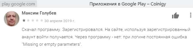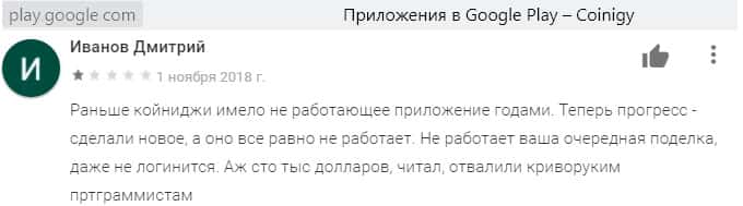 На веб-сайте play google com сохранились реальные непроплаченные отзывы о Coinigy. На деле мы видим что шулера не заинтересованы в прибыли своих пользователей. Приложение работает хуже некуда, если вообще у клиента получается залогиниться. В общем, халтура видна даже невооружённым глазом.