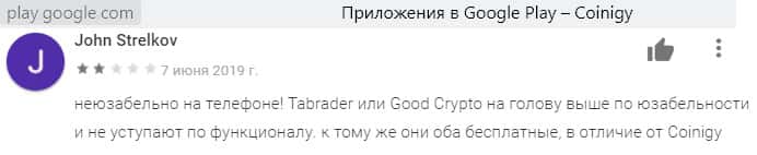 Отзыв реального пользователя о мобильном приложении Coinigy