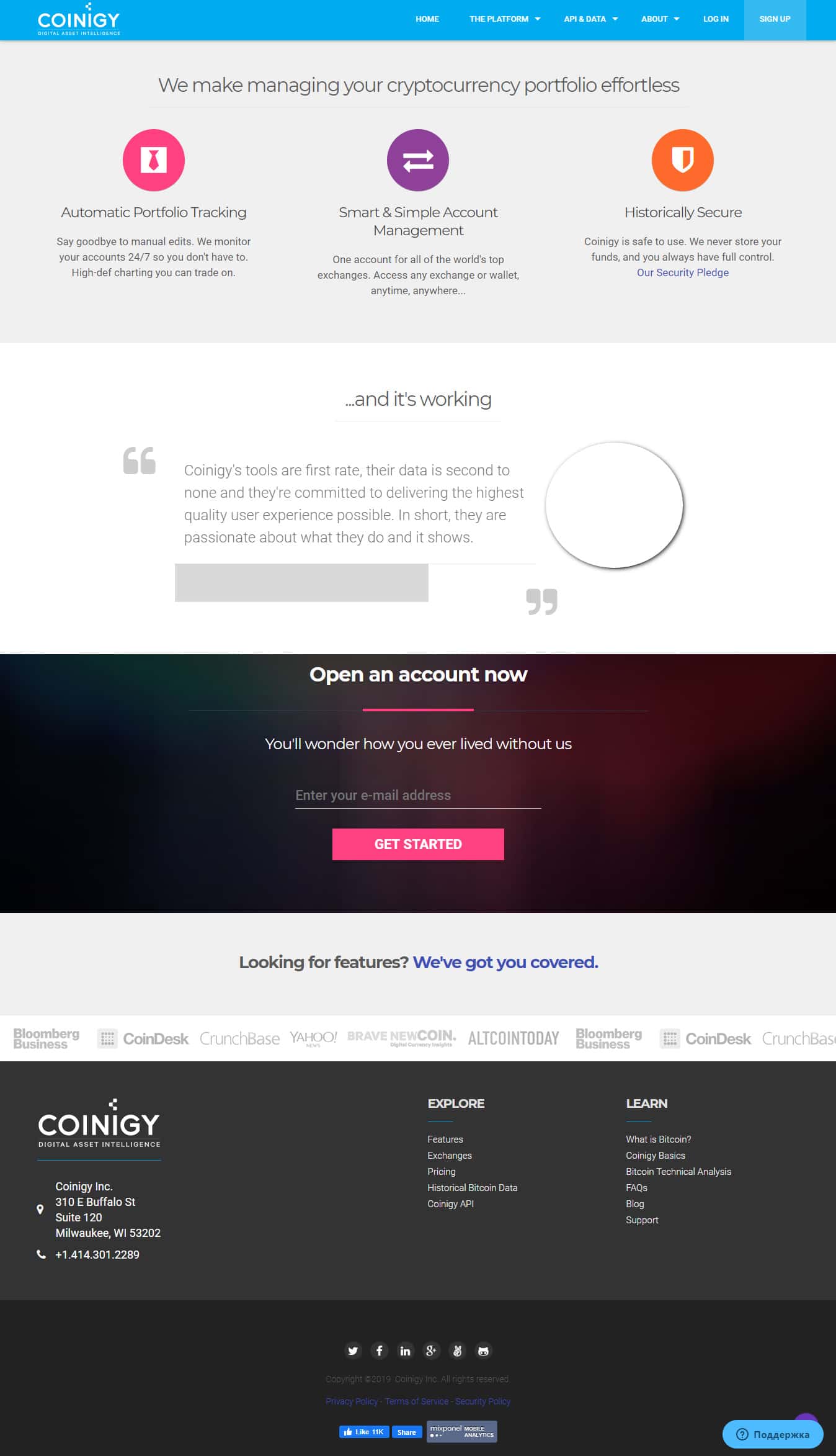 Как видите, всё, что есть у шулеров Коиниджи, это проплаченные рекламные статьи, сказки о заработке на криптовалютах и абсолютная халтура по отношению к клиентам. Она проявляется как в неюзабельном мобильном приложении, так и в веб-сайте, который сам по себе разоблачает мошенников Coinigy.