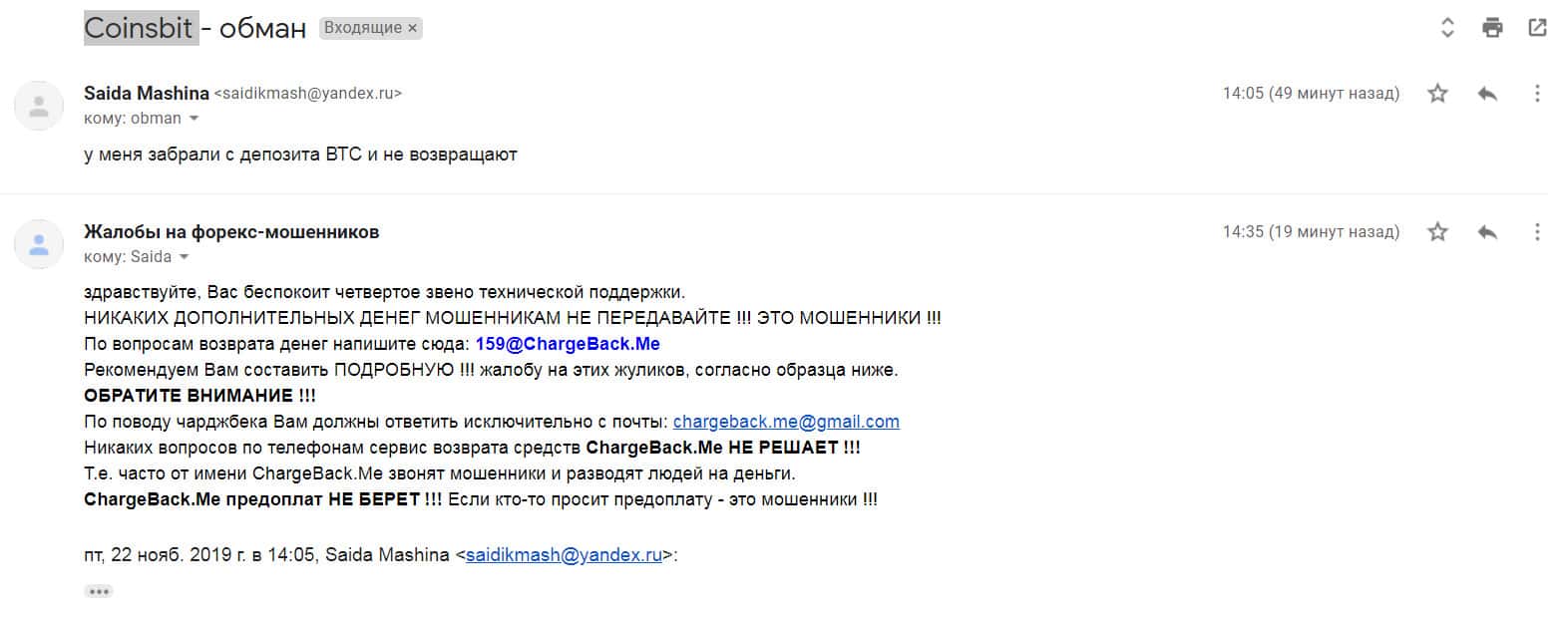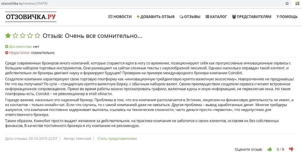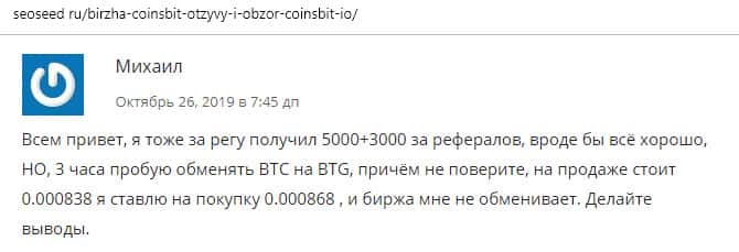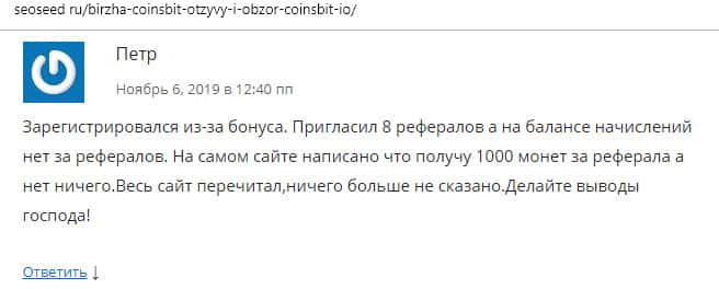 - Отзыв о жуликах Coinsbit с ресурса CoinsBit