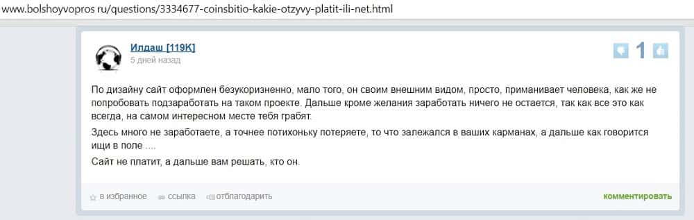 - Ещё один отзыв о сайте аферистов Коинс Бит