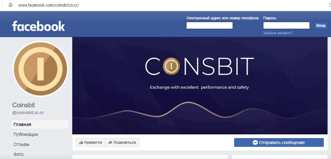 - Работа лохотрона CoinsBit в социальных сетях