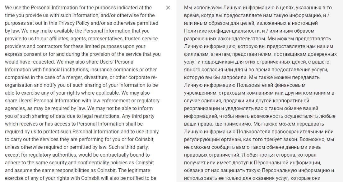Политика конфиденциальности шулеров CoinsBit