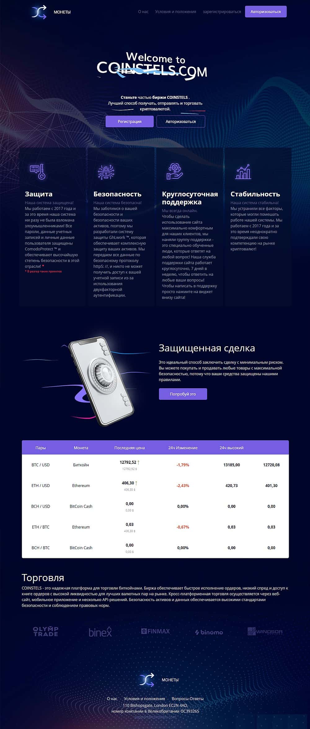 coinstels com - официальный сайт сливной криптобиржи Коинс Телс