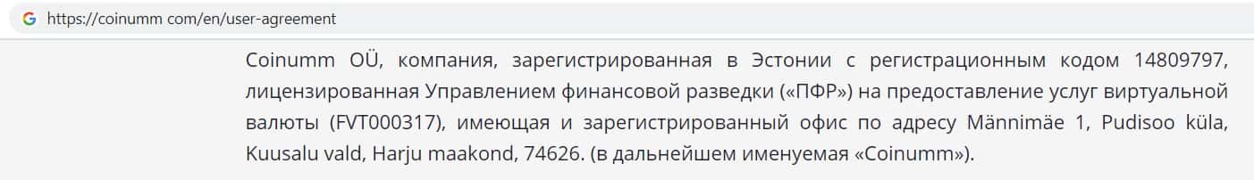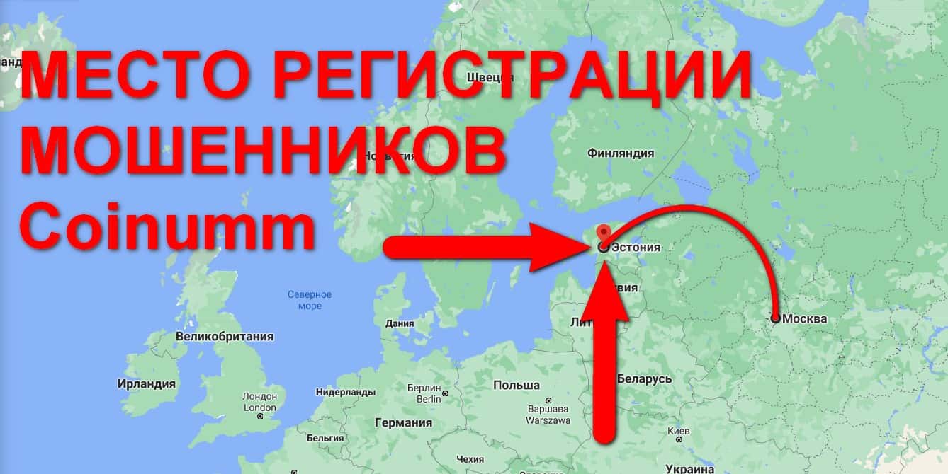 Лохотрон Coinumm указал, что зарегистрирован в Эстонии. Этой информации не стоит доверять, так как мошенники часто используют фальшивый адрес что бы обмануть клиентов.