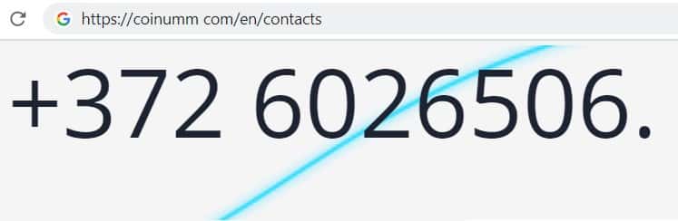 Мошенническая организация Коинумм указала на своём сайте контактный номер телефона, с которого сотрудники лохотрона звонят клиентам и заманивают в ловушку. Номер мошенников: