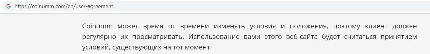 Финансовые кидалы Коинумм указали в своём соглашении пункт, согласно которому фирма жуликов имеет полное право изменять своё соглашение по собственному усмотрению.