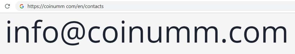 Недоконтора Коинумм так же указала контактный адрес электронной почты. Поддержка компании так же делает всё, чтобы выманить денежные средства клиентов. Почта кидал: