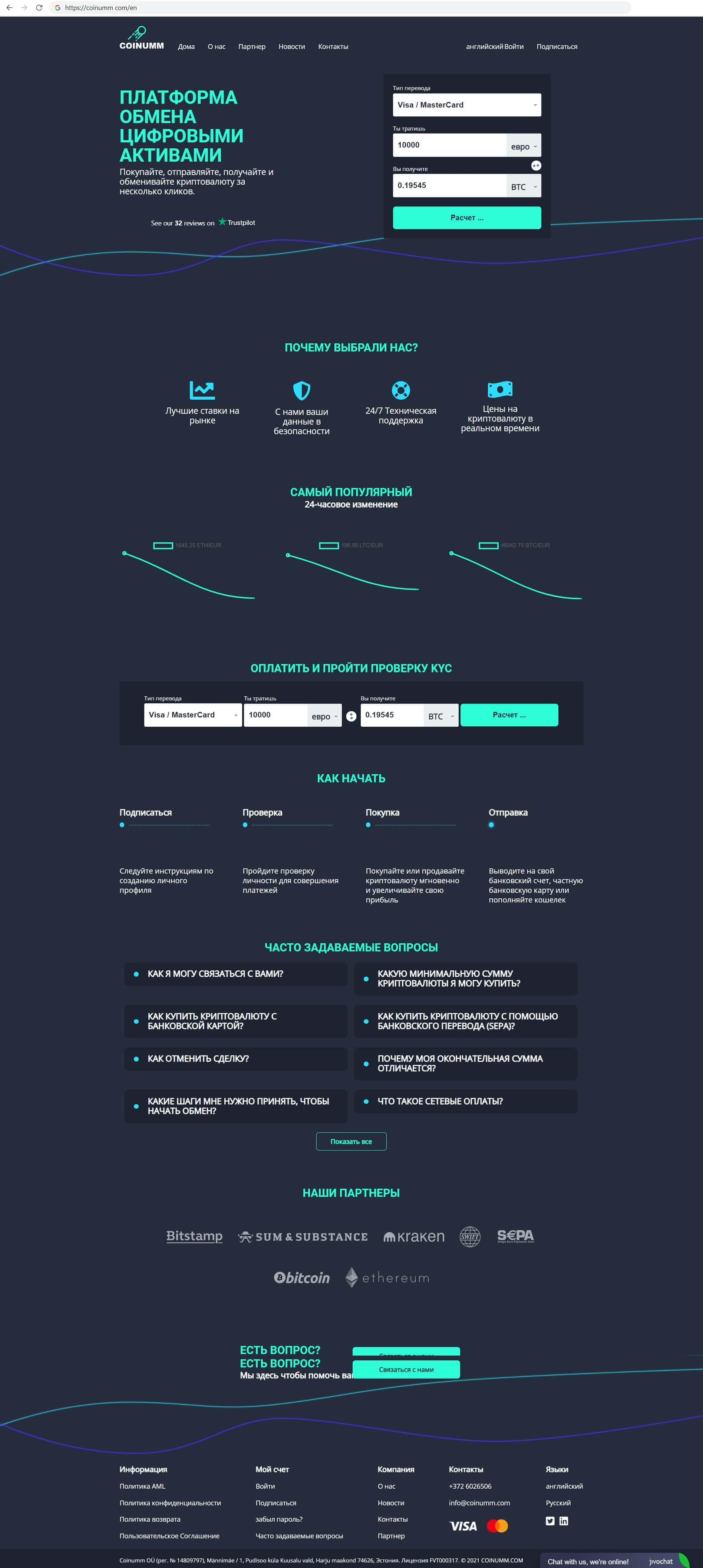 Главный интернет ресурс финансовых жуликов Коинумм представляет собой коммерческий проект, который мошенники создали по бесплатному шаблону, чтобы заманивать клиентов.