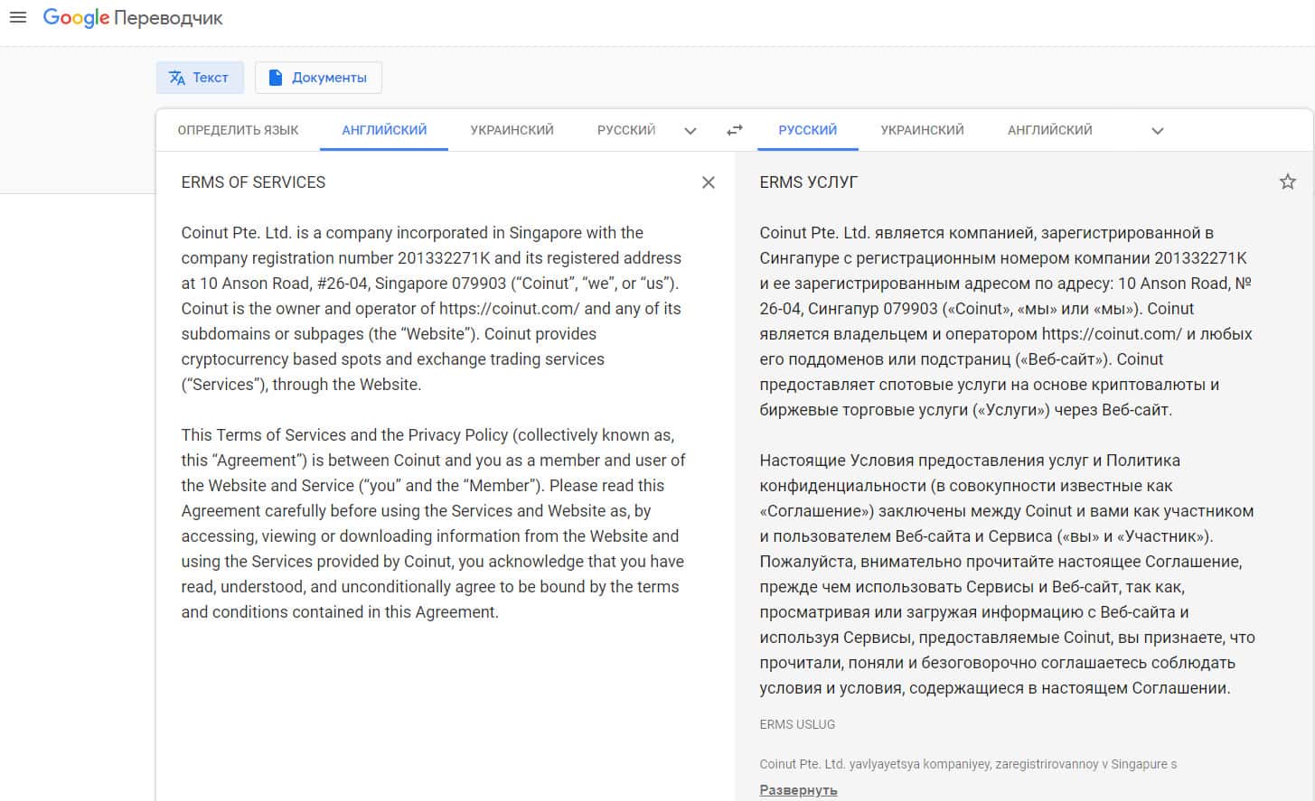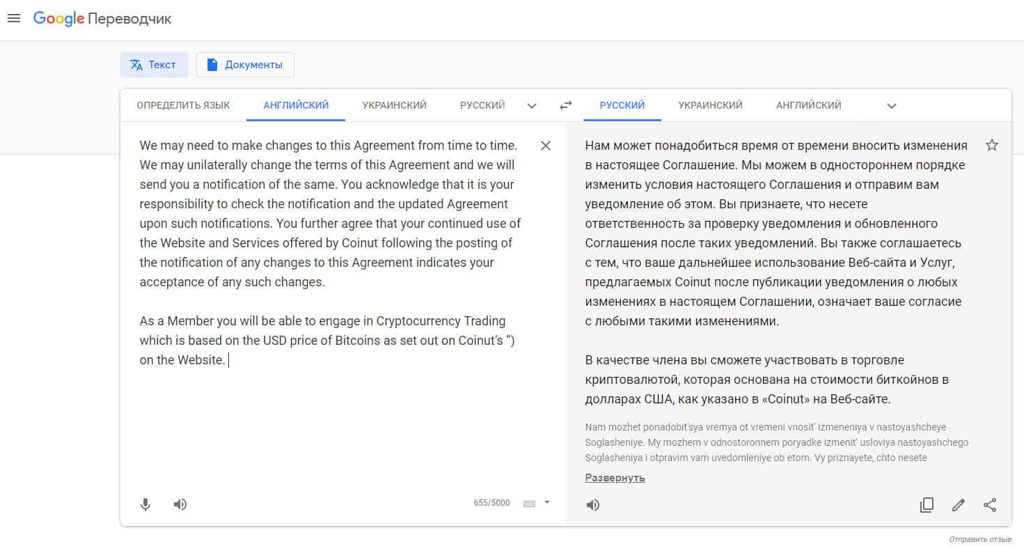 Перечень условий клиентского соглашения мошенников Коинут