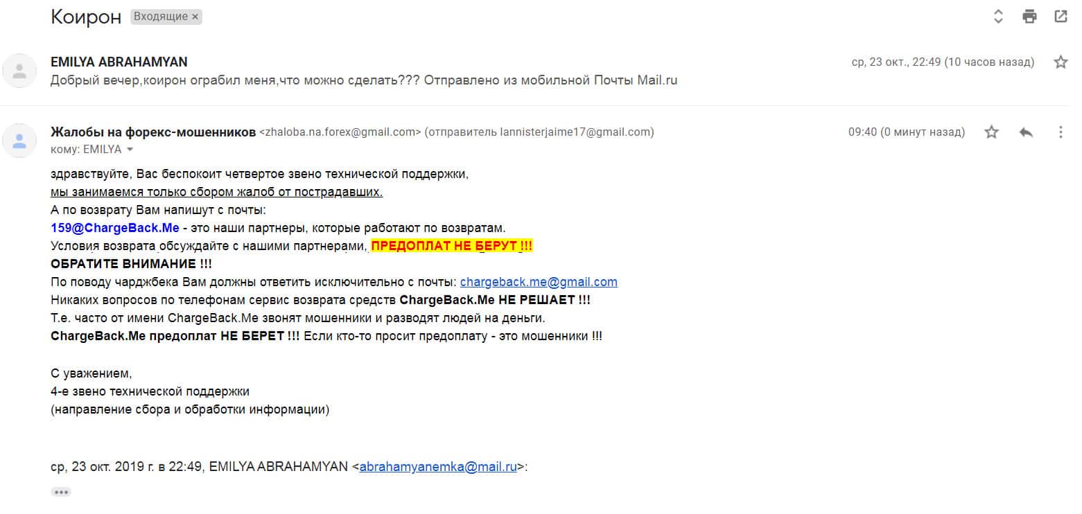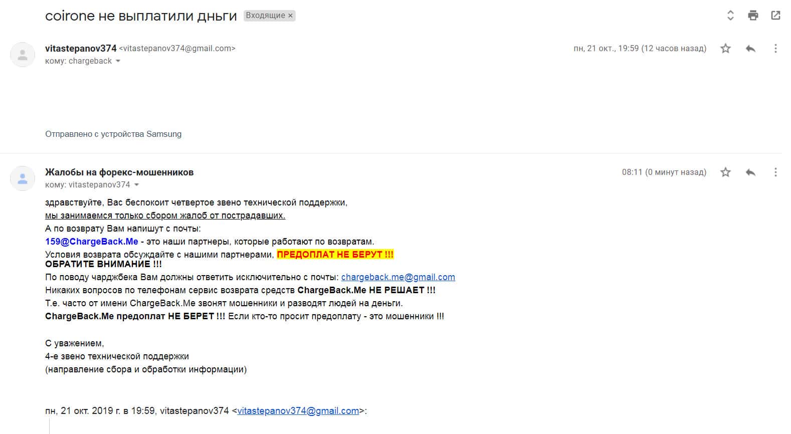 - Жалоба на мошенников Coirone от очередного пострадавшего клиента