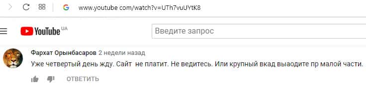 В данном случае пользователь сети доверился тому, что пишут на сайте контор Коирон и посчитал, что это его звездный час и за короткое время сможет заработать много денег. Жертва решилась вложить 4000 рублей и через день поставил на вывод уже 6000 рублей. Естественно никто не отдает теперь ему ни копейки.