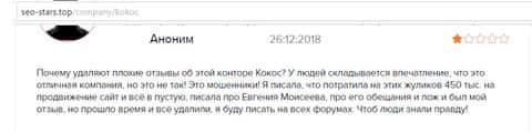 Отвратительное обслуживание от scam-конторы Кокос Груп привело клиента к потере 500 000 рублей