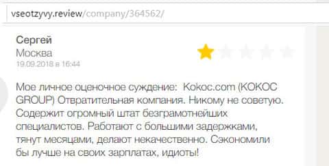 - О чем ведают отзывы о Kokos Group, написанные клиентами этой конторы?