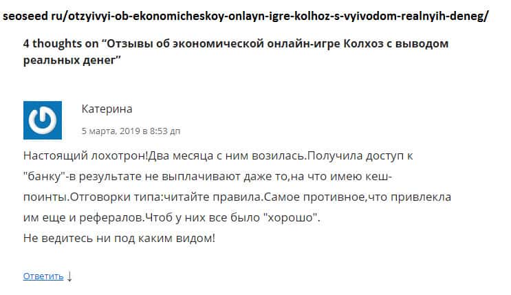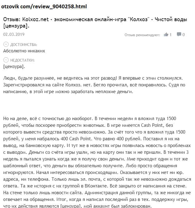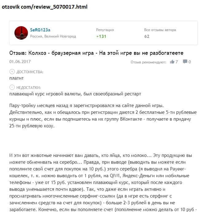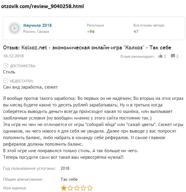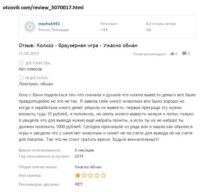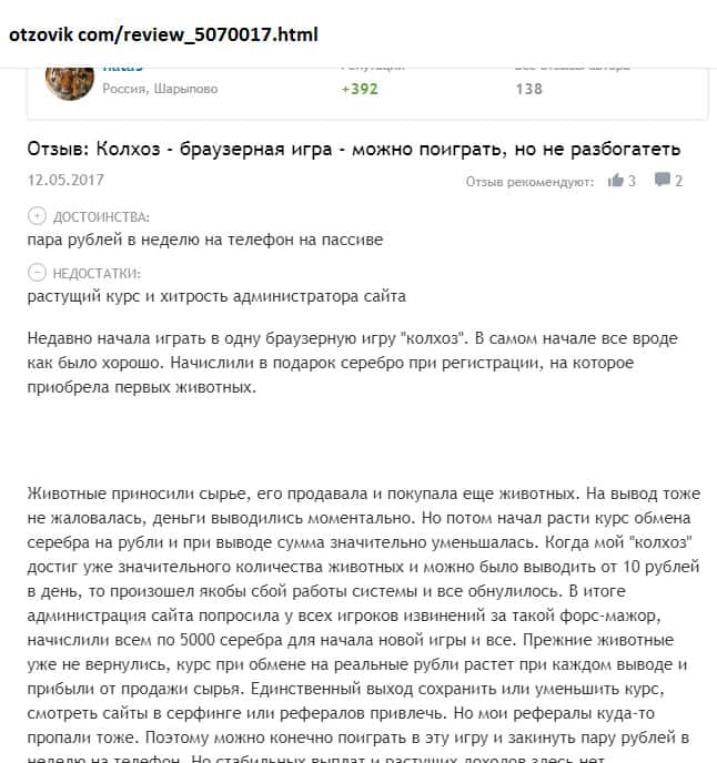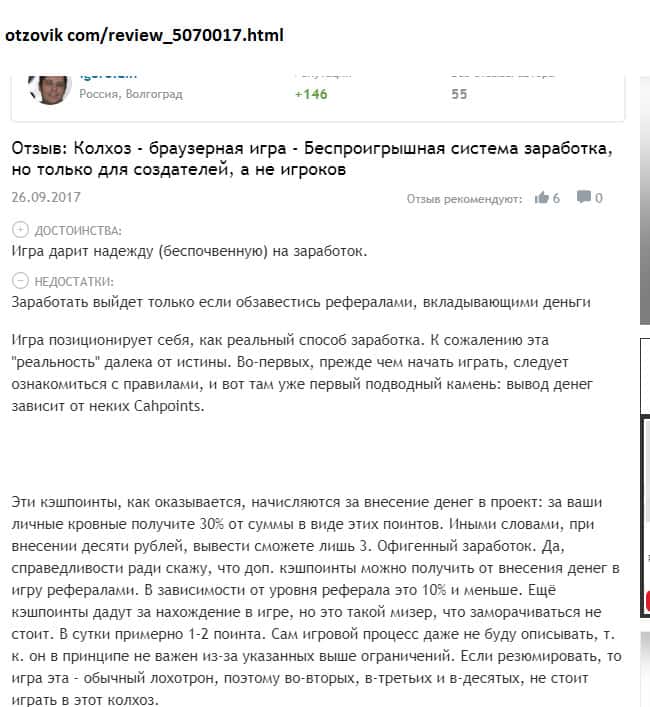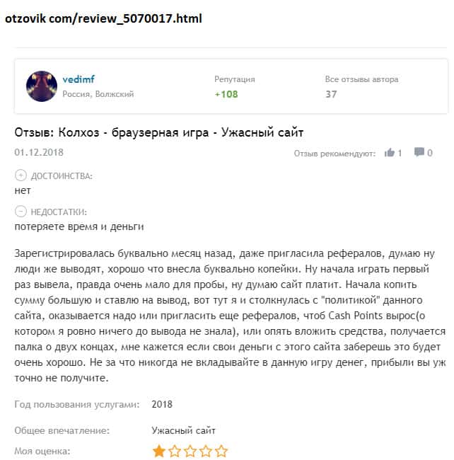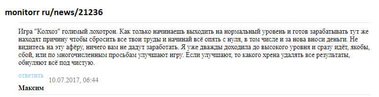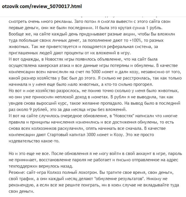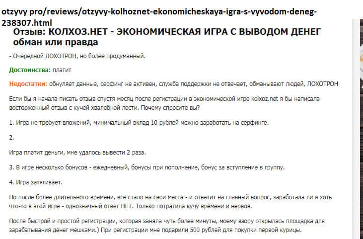Просмотрев множество комментариев пользователей о шараге Колхоз Нет начиная с 2016 года, можно сказать, что отзывы сильно изменились! Может быть в первое время жулики более честно вели себя с игроками, но чем дальше, тем печальнее! С 2016 года было внесено множество изменений в правила игры и по сути юзерам трудно что-то реальное заработать!!!
