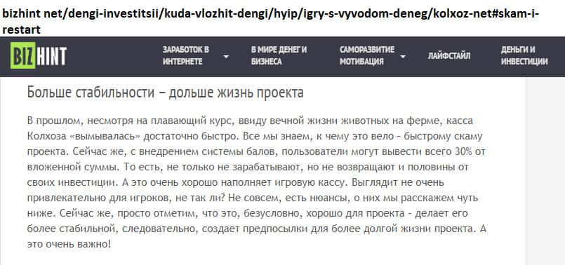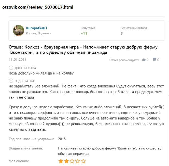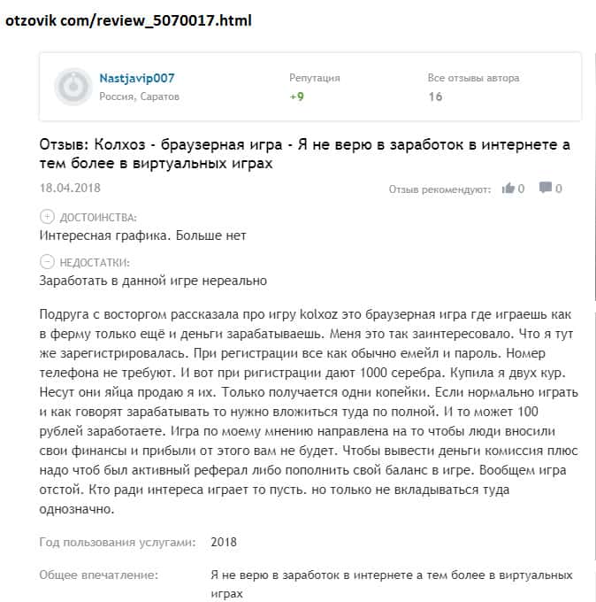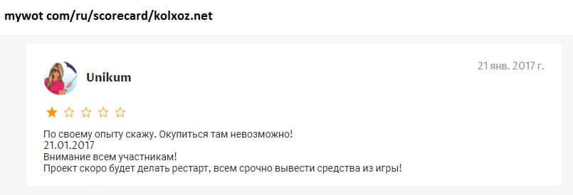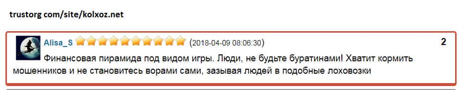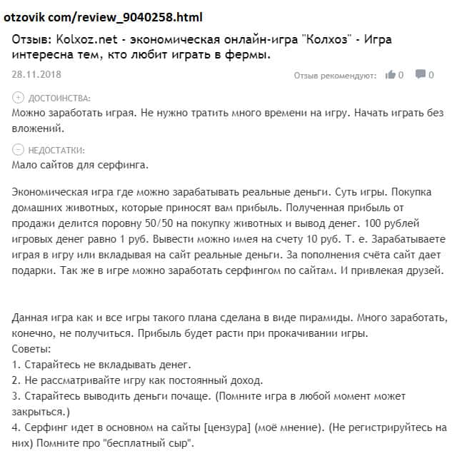 - Псевдо игра Kolxoz Net дарит только надежду на заработок, но не реальную возможность!
