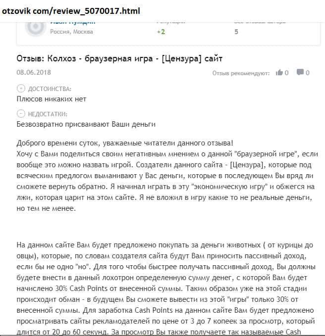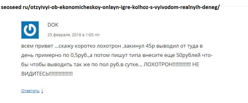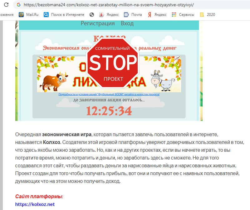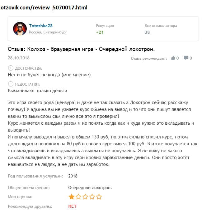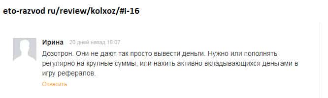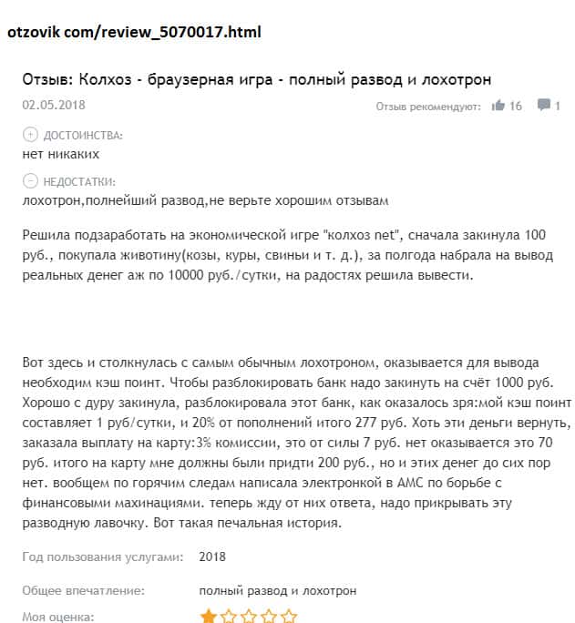 - Якобы экономическая игра Колхоз Нет - это банальный развод и лохотронская контора!