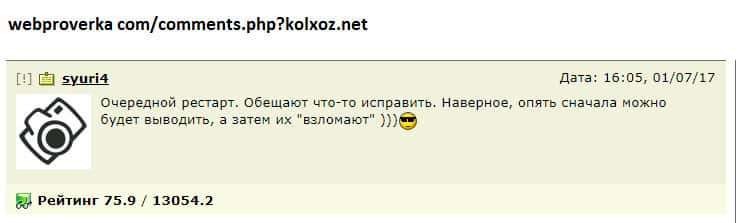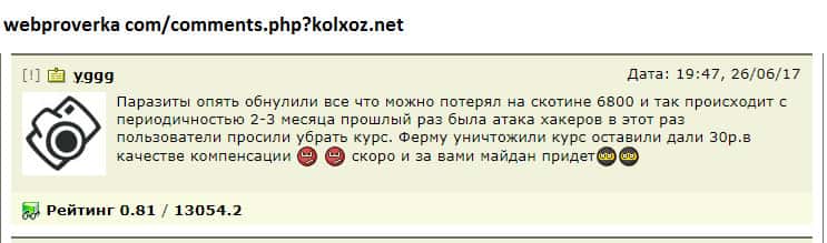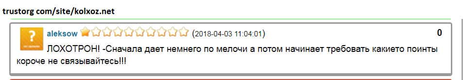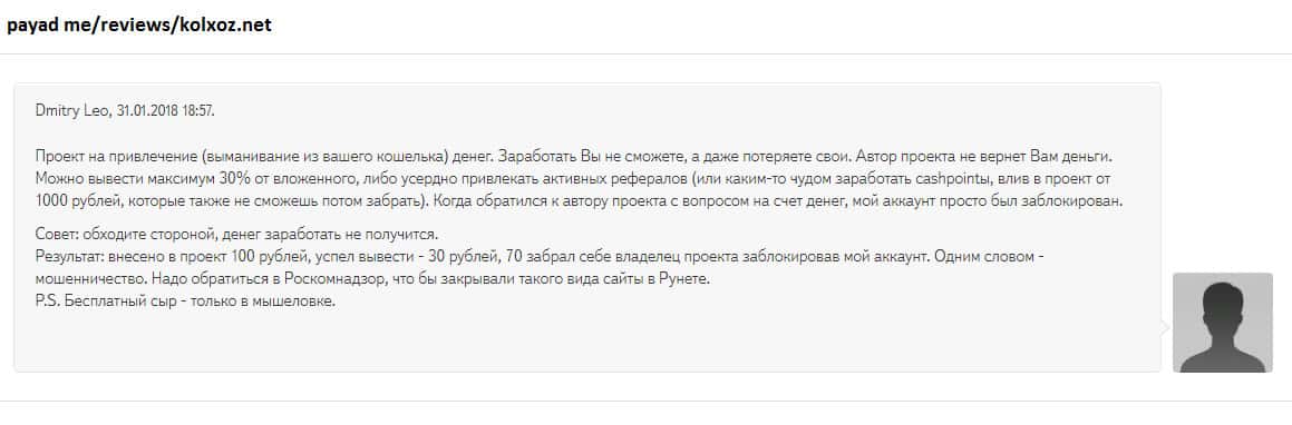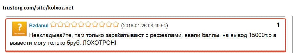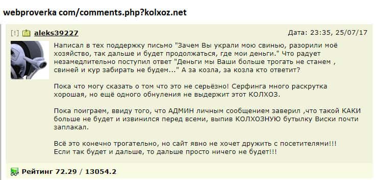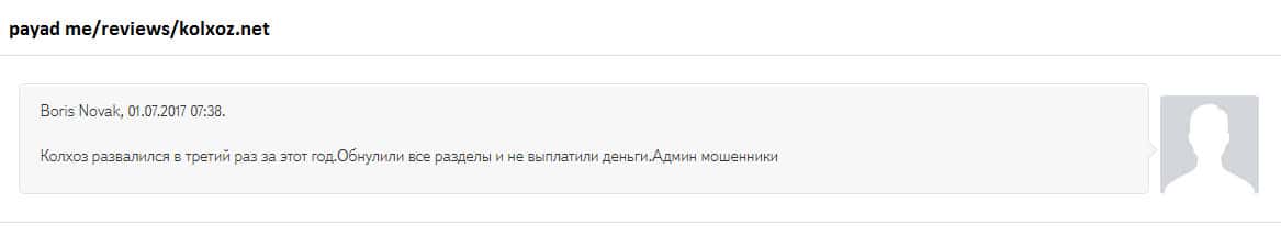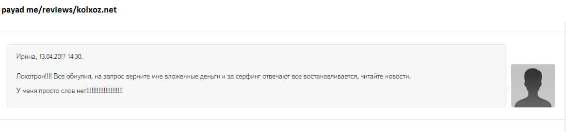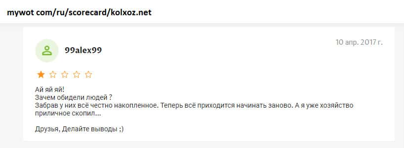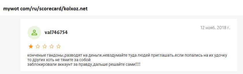 - Пользователь высказал лохотронщикам Kolxoz Net всю правду и был заблокирован!