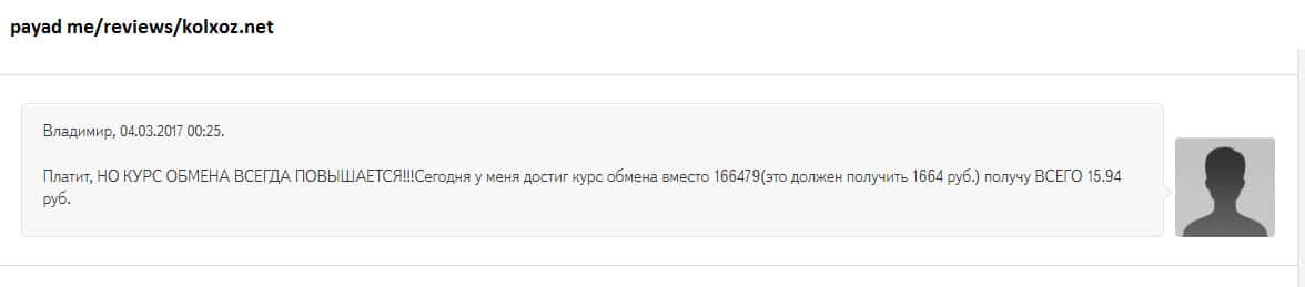 - Неадекватный курс обмена шараги Kolxoz Net не поддается разумному объяснению!