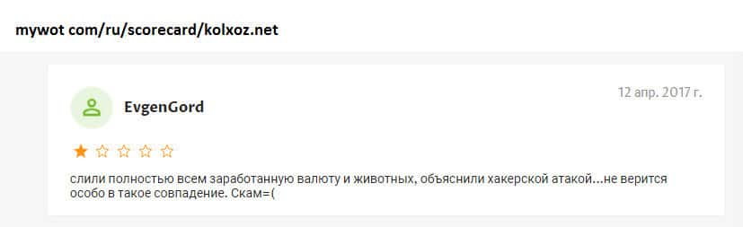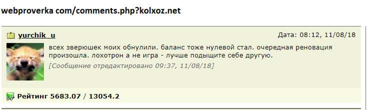 - Пользователь накопил достаточно активов и дорогих животных, а жулики Kolxoz Net блокируют вывод!