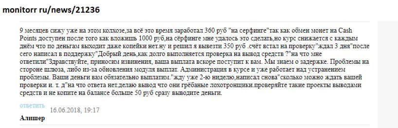 - Жулики Kolxoz Net не начислили пользователю монеты и просто от него морозятся!