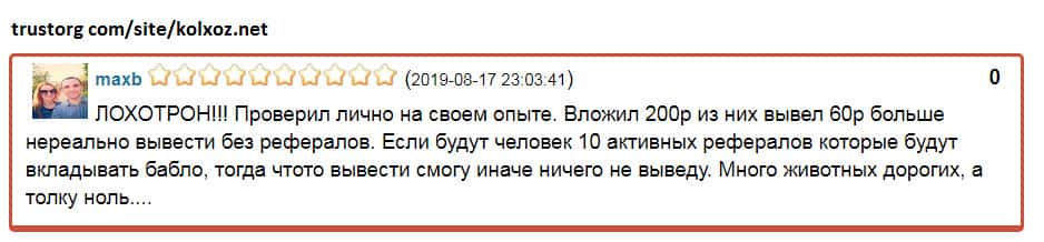 Пользователи не то что не зарабатывают в конторе Колхоз Нет, но даже не возвращают половину своих вложений!
