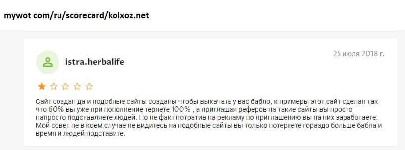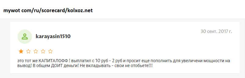 - Пользователи не то что не зарабатывают в конторе Колхоз Нет, но даже не возвращают половину своих вложений!