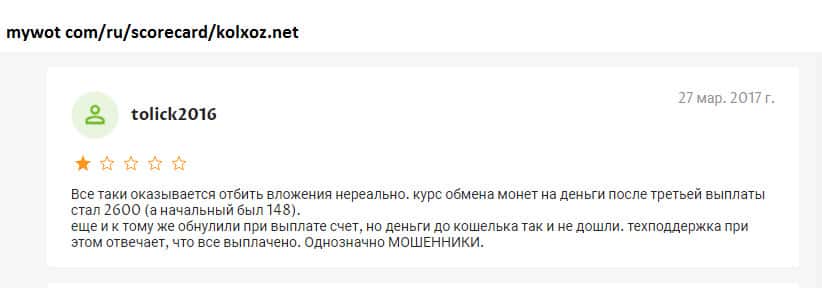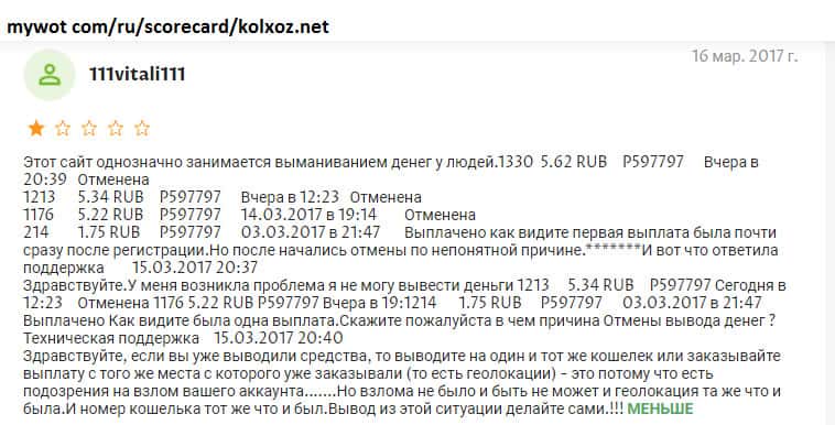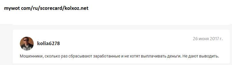 - Игроки реально выводят с лохотрона Kolxoz Net только мизерные копейки!