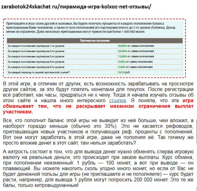 - Соглашаясь на условия игры лоховодов Kolxoz Net - пользователь вступает в ряды финансовой пирамиды!