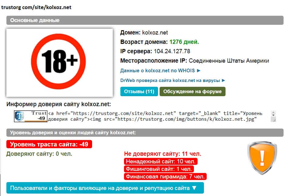 - Проверка официального сайта пирамиды Kolxoz Net на мошеннические действия в сети!