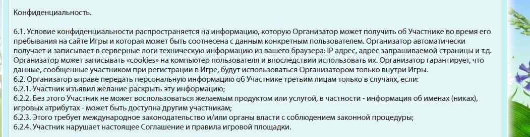 Личные данные каждого пользователя должны быть защищены политикой конфиденциальности! На сегодняшний день, в любой структуре встречается этот документ! Не исключение и игровая платформа Колхоз Нет! Только если быть внимательным, то становится понятно, что это мыльный пузырь! Все данные игроков могут быть переданы третьим лицам!!!
