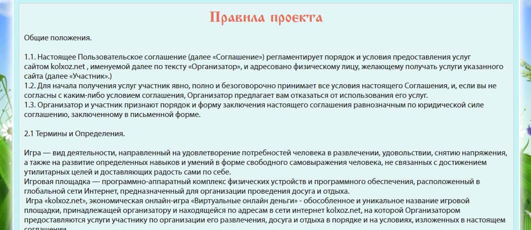 Соглашаясь на условия игры лоховодов Kolxoz Net - пользователь вступает в ряды финансовой пирамиды!