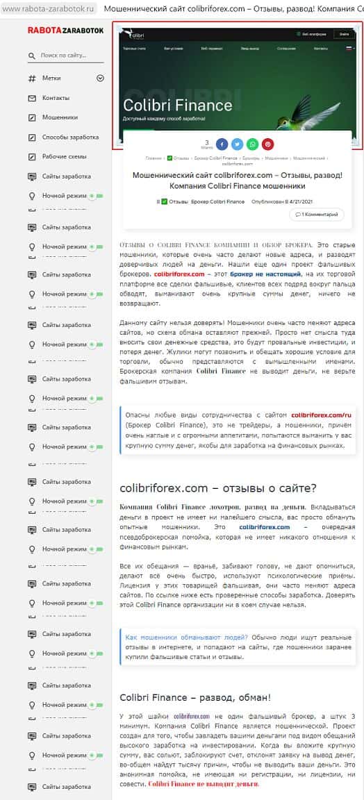- Обзоры махинаторов Колибри Финанс, оставшиеся в пространстве интернета
