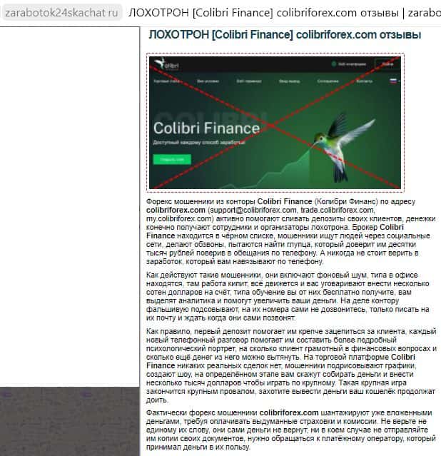 Обзоры махинаторов Колибри Финанс, оставшиеся в пространстве интернета